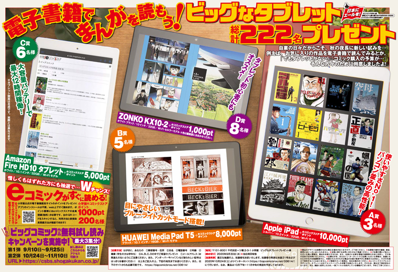 ビッグコミック 本誌18号「ビッグなタブレットプレゼント」当選者発表
