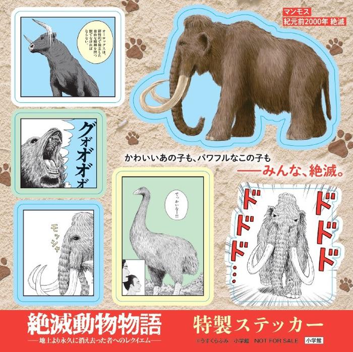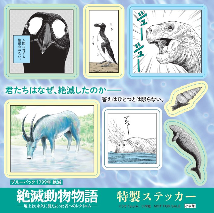 フェア参加書店にて『絶滅動物物語』1~3集のいずれか1冊を購入すると、上記ステッカー (全3種)のいずれか1枚がもらえます! フェア対象書店は下記告知ページをご確認ください。