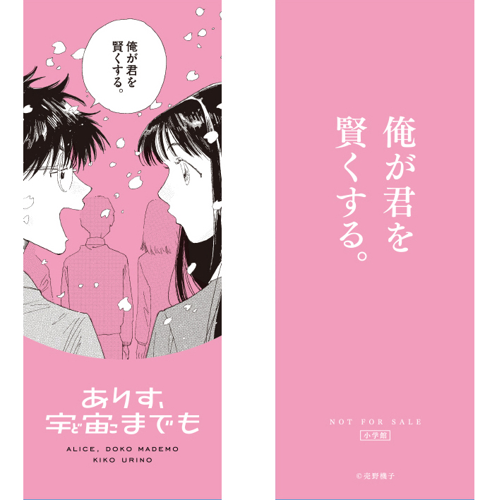 【名言しおり】のデザインは全5種類。主人公・ありすが自身の『深い感情』をはじめて言語化できたときに発した「この先も、きっとあたしは変わる。」や、孤高の天才・犬星がありすのサポートをかってでる際に言った「俺が君を賢くする。」など、作中の名言を使用してデザインしました。今回のフェアでしか手に入らない限定アイテムになりますので、この機会をお見逃し無く!