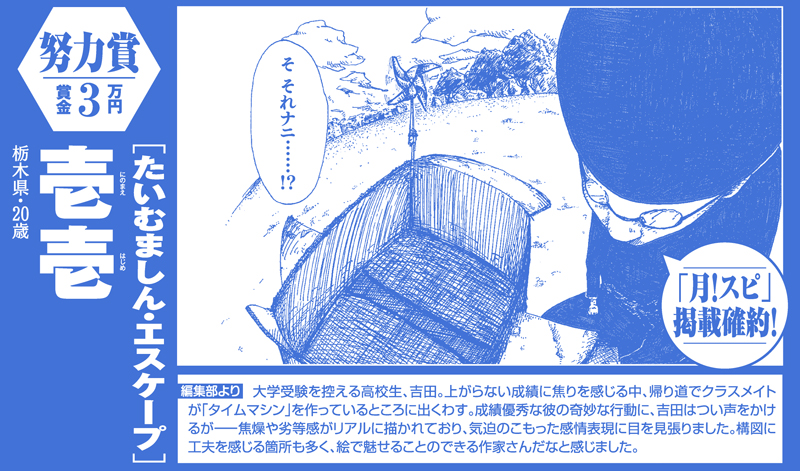 【努力賞】賞金3万円 『月スピ!』掲載確約
